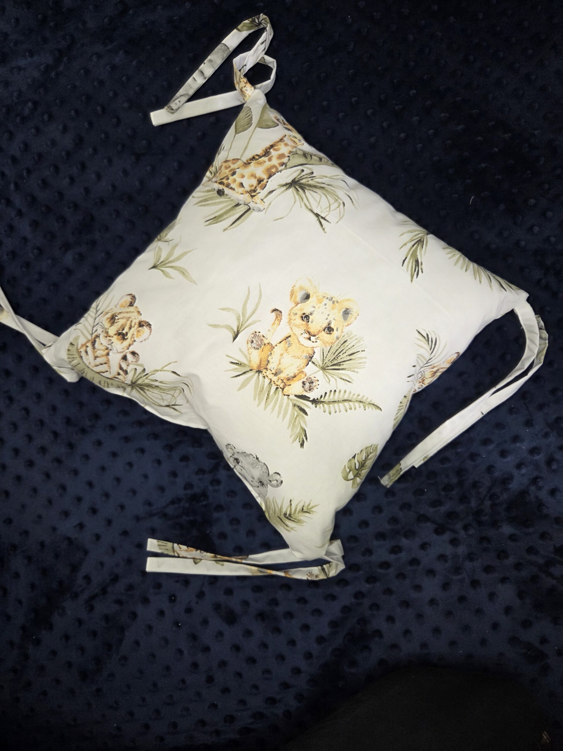 A párna négy sarkában megkötővel rögzíthető a kiságyhoz.